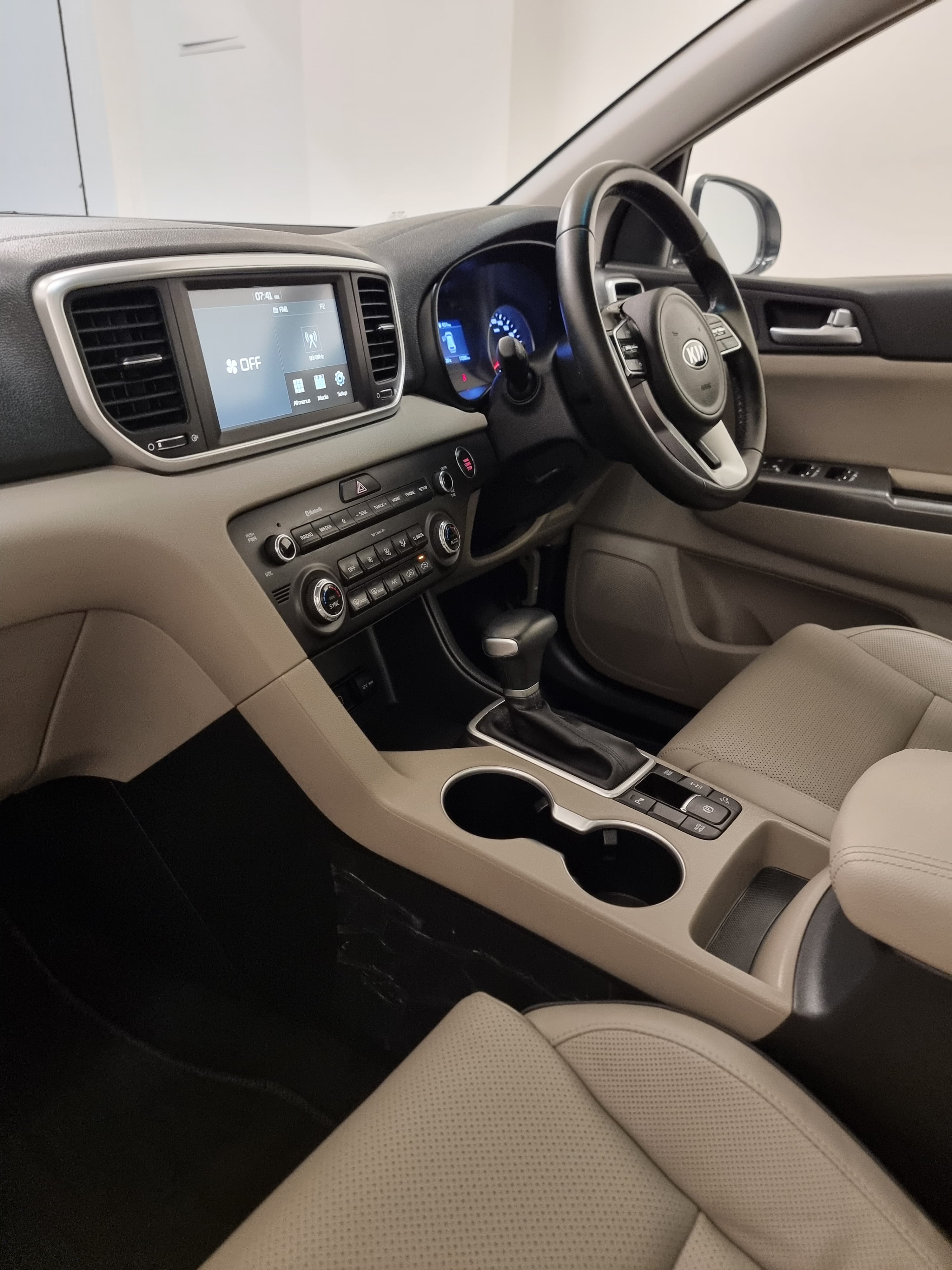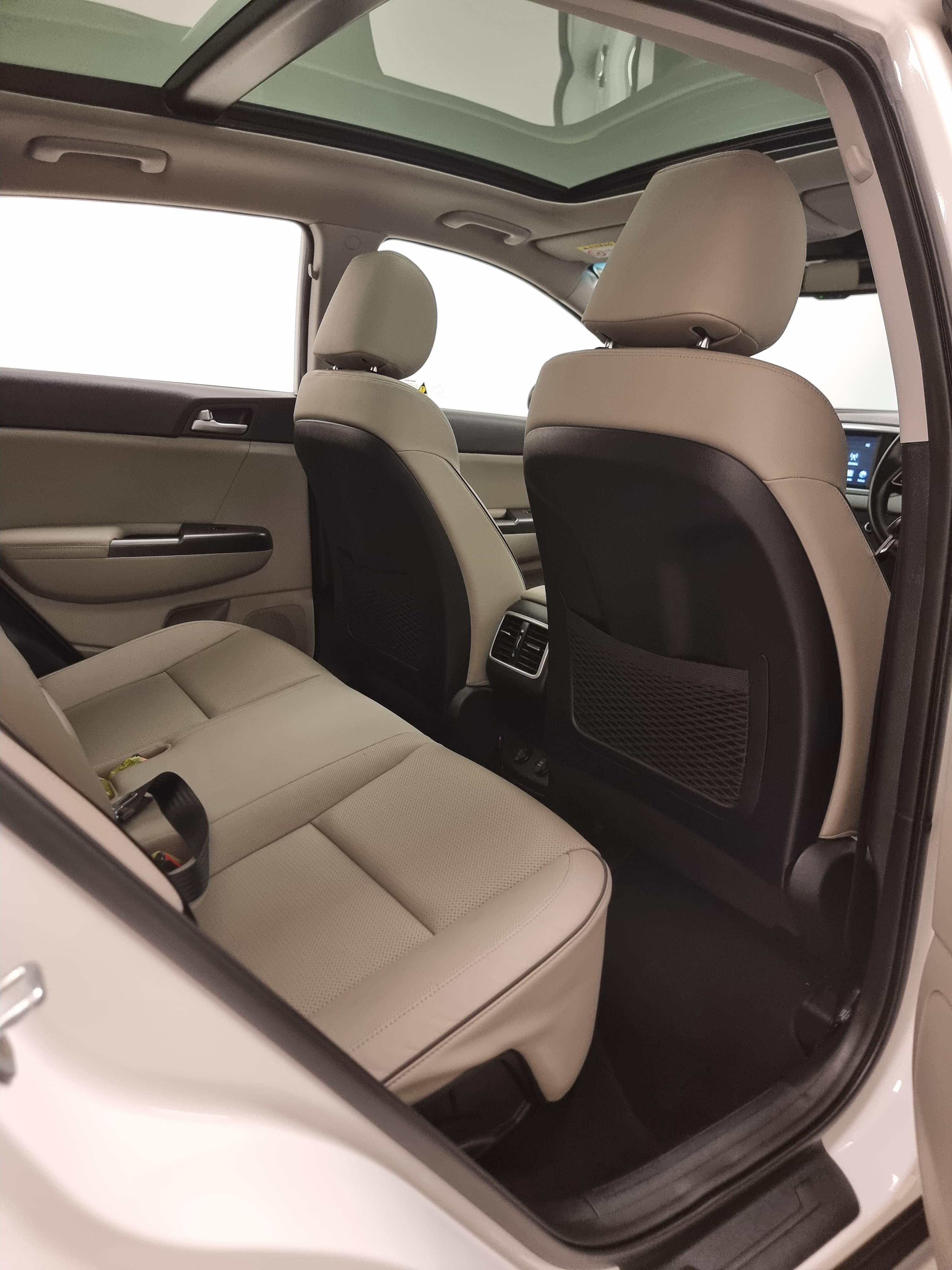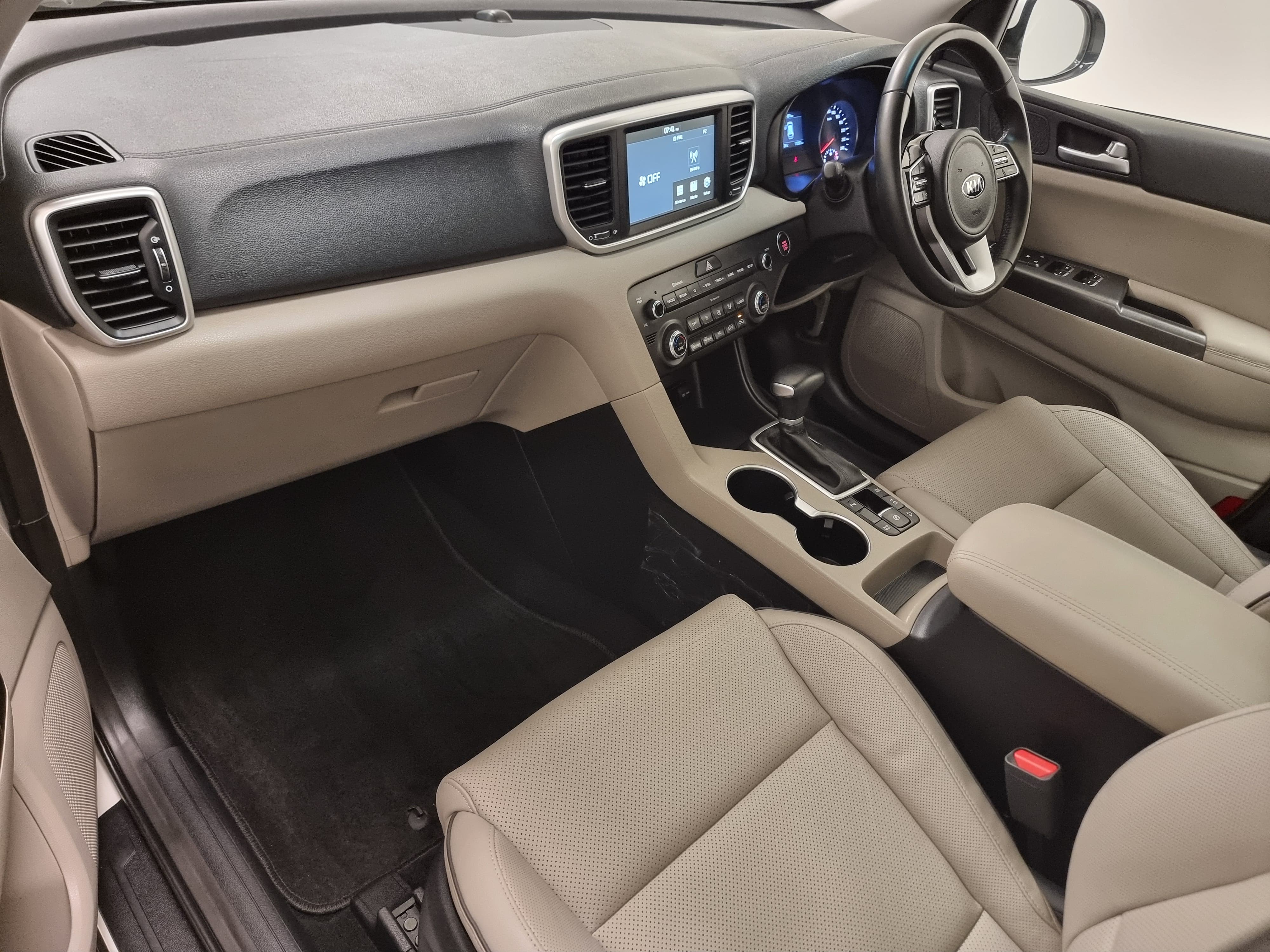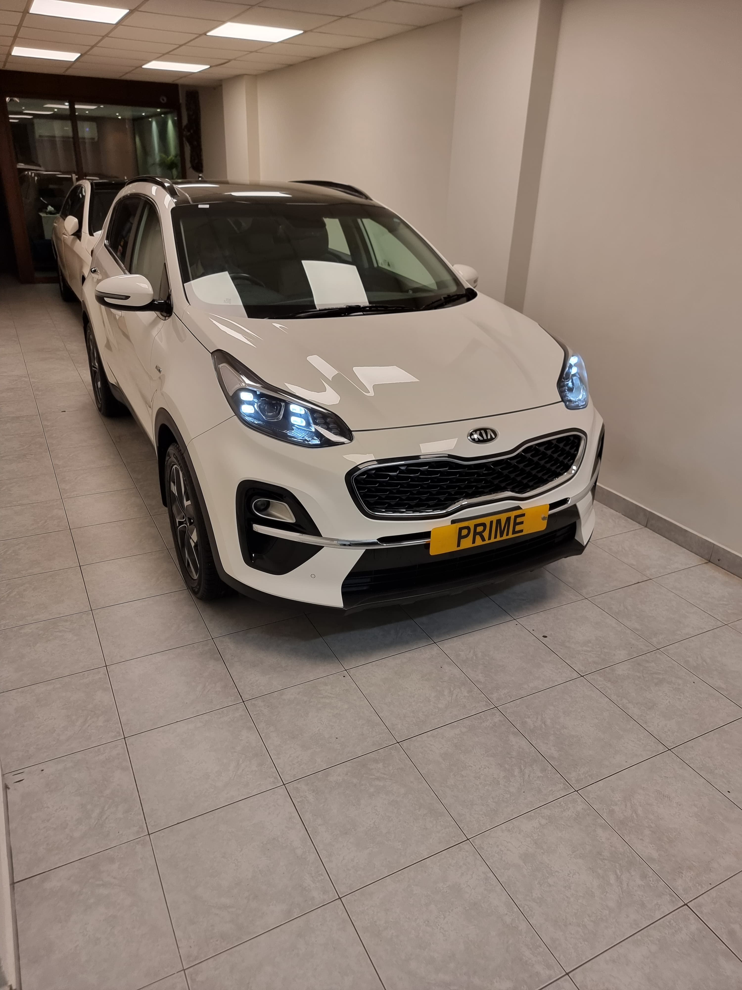With a sleek white exterior, bold front grille, and striking LED headlights, the Kia Sportage stands out on the road. The aerodynamic design enhances performance while maintaining a sporty and sophisticated look.